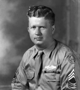 Then-Master Sgt. Roderick “Roddie” W. Edmonds distinguished himself by conspicuous gallantry and intrepidity at the risk of his life above and beyond the call of duty while serving as the senior non-commissioned officer in charge of more than 1,200 prisoners of war at Stalag IX-A in Ziegenhain, Germany from Jan. 25 to March 30, 1945.